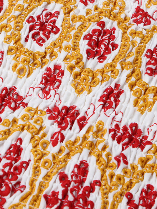 New sexy tube top embroidery hollow ruffle dress with waist slimming printed slim skirt