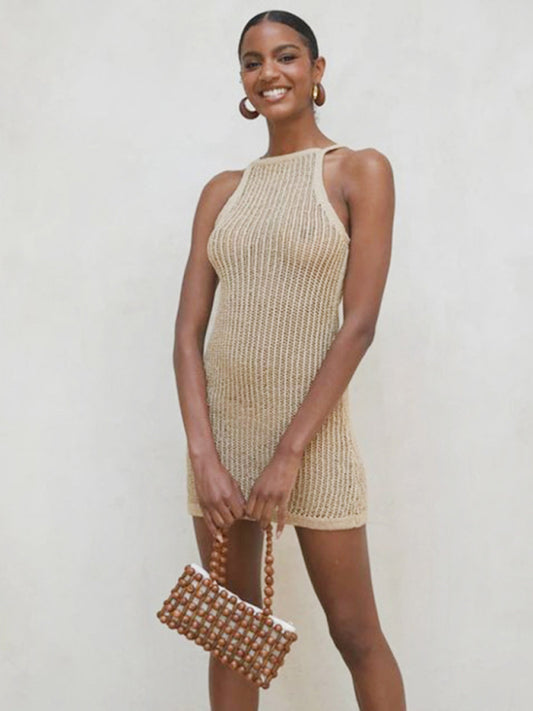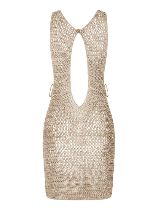 Women's backless sexy hip-wrapped knitted beach dress cover-up dress